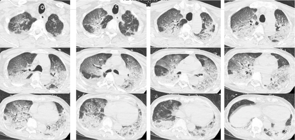 入院时,韩爷爷意识不清,血压、心率下降,医生随即为他安排头颅、胸部CT和肺血管CTA检查,结果显示,老人的双肺出现大面积白色影像。经会诊,韩爷爷被确诊为热射病诱发的肺水肿。